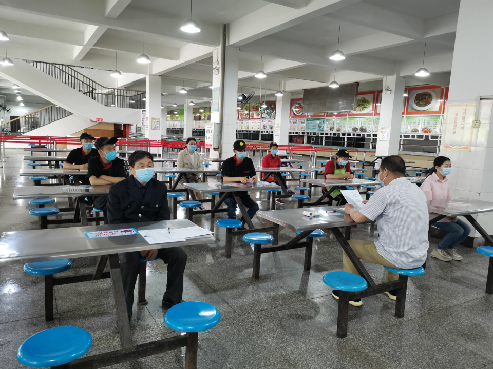 2020年5月6日,今天是学院开学的第一天,早上7:00饮食中心所有需要复学工作的员工就到了西苑餐厅参加了饮食中心举行的培训会议,培训中特别讲解了《随州职业技术学院春季开学新冠肺炎防控方案》;《学生食堂就餐管理制度》;《食品安全手册》。