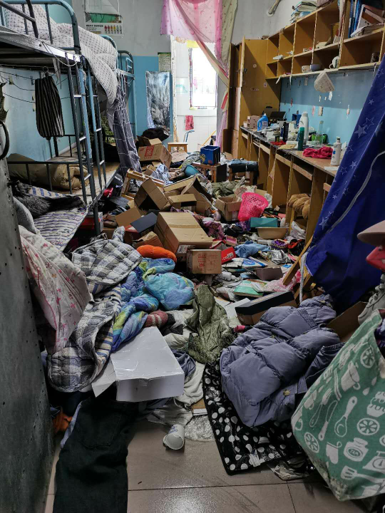 打扫毕业生及实习生退寝房间卫生是宿管中心暑假值班人员的主要任务之一,但是今年因为疫情大部分实习生及毕业生未能返校,重要物品由老师及同学帮忙打包快递,宿舍内滞留物品较往年更多,给卫生打扫工作带来较大难度。宿管中心顶着时间紧、任务重的压力,统筹安排。宿管中心员工顶着高温,不怕脏不怕累的辛苦劳作,清理转运房间内堆积如山垃圾,刷洗卫生间、洗漱池、地面,确保房间卫生无死角。在宿管中心暑期所有值班人员的辛苦付出下,圆满完成六百多间退寝房间卫生打扫工作,为2020级新生提供干净明朗的住宿环境打下良好基础。