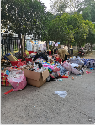 新学期伊始,大专老生返校及中专新生入住学生公寓,沉寂了大半年的学生公寓热闹起来。学生抵达宿舍第一件事情就是打扫宿舍卫生,尽管宿管阿姨已经在开学前为学生打扫过宿舍并全面消毒,但是毕竟有七,八个月宿舍无人居住,柜子里的衣服,食物等许多东西都发霉,大量发霉东西被当作垃圾陆陆续续地扔到公寓外红色垃圾桶。连续数日,学生公寓保洁员从早到晚不停清理转运垃圾,垃圾仍旧源源不断的从学生公寓内扔出。各栋公寓保洁员自发加班加点,直至晚上十点许,将垃圾清理完毕才顶着满天星光带着疲惫的身影下班。