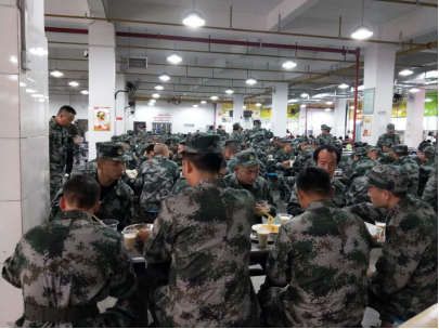 随州市广水人民武装部组织民兵于近日到我院进行训练,为确保基干民兵有充沛的体力,旺盛的精力投入到集中轮训任务中去,西苑餐厅专门成立民兵训练保障组,积极创新菜谱保证伙食质量,科学调剂营养需求,精心搭配一日三餐。