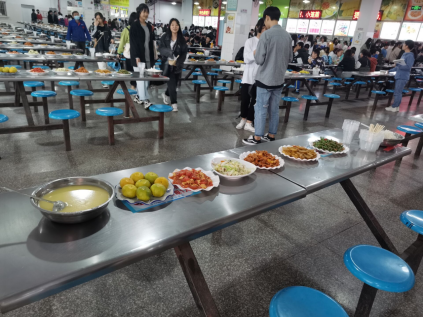 在这个紧要时刻,民兵训练保障组坚决要做好民兵们的后勤保障。既要保证学院学生的正常伙食供应,又要保证官兵吃好,专门为他们提供了桌餐供应,每桌8人,早餐两主食,两炒菜,两咸菜,每人一个鸡蛋,一杯热;中餐三荤两素一汤配水果,主食为米;晚餐三荤两素,搭配米饭和汤。