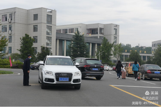 校内代步车免费为新生服务,往返在校门口与宿舍之间。