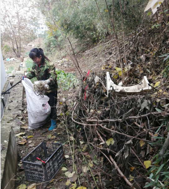 由于学院面积大,保洁人员少,为了提高校园环境卫生干净、整洁,给全院师生及教职工一个舒适的生活环境,绿化班全体员工利用周日及中午休息时间对全院所有无人员负责区域的绿篱、草坪、山坡局部部分进行拉网式巡查,清理各类垃圾死角,男同志负责死树枝及大件杂物清理和拖运,女同志负责各类垃圾集中清理,由于都是碎小垃圾,为了方便快捷清理,姐妹们就只带双手套,提着袋子,用手捡起一片片白色垃圾碎片。