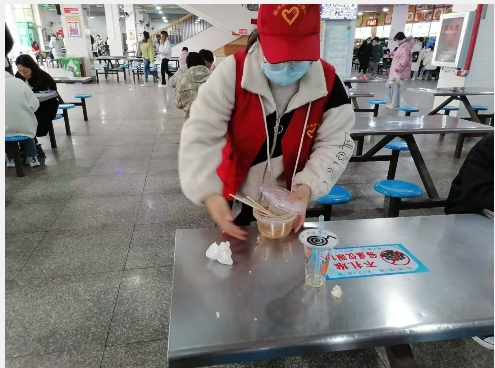 11月25日至26日,西苑餐厅特邀学院青年志愿者协会成员到餐厅宣传光盘行动,在餐厅内,大家帮忙擦桌子,扫地,收拾餐具,亲身体会到了“谁知盘中餐,粒粒皆辛苦”。对剩饭剩菜过多的同学进行讲解,引导,值得一提的是,我院同学都有较高的觉悟,对光盘行动理解并支持,表示在今后的用餐中尽量减少浪费。志愿者们对餐厨垃圾进行统计,在他们的宣传和讲解下,餐厨垃圾明显减少,可见大家都知道一粥一饭来之不易。
