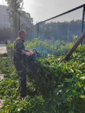 迎着晨风,伴着朝阳,绿化班组开始了一天辛勤工作,他们手持电动化修剪设备,如工匠般精雕细琢,为花圃苗木整形修剪维护,穿梭在校园的灌木和草坪中,细心的呵护着校园的一草一木。伴随着一阵阵咔咔的修剪声,绿植迅速恢复了元气和富有层次感的造型,形成一道道错落有致的园林景观。