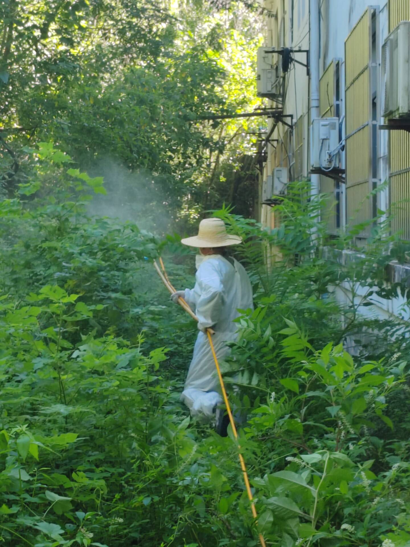 (本网讯张乐乐报道)为严防登革热、基孔肯雅热等蚊媒传染病在校园传播,后勤服务中心迅速行动,全方位开展消杀工作,为师生筑牢健康防线。后勤聚焦重点区域,实现全覆盖消杀。消杀人员深入绿化带、教学楼道、宿舍楼道、垃圾池、排水沟及各类积水区,通过清理垃圾杂物、清扫积水切断蚊虫孳生链;对绿化带定期除草、疏水系、投药剂,从源头杜绝蚊虫滋生。目前,校园蚊虫密度已得到控制。后勤将持续加大消杀力度,保障师生安全舒适的学习生活环境。
